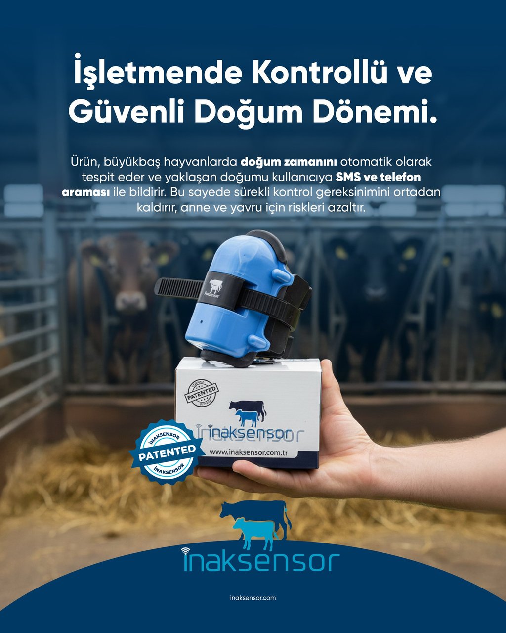 İnak Sensör doğumu anında haber verir. Zamanında müdahale edersiniz, kayıp yaşamazsınız. Tek bir buzağı kurtarma, cihazın maliyetini karşılamaya yeter.