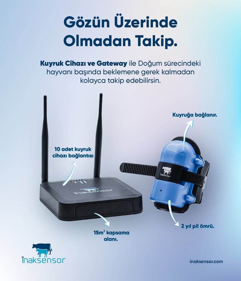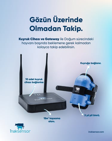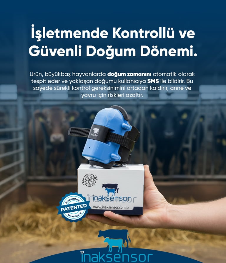 Büyükbaş hayvancılıkta doğum süreci, zamanında müdahale gerektiren en kritik aşamalardan biridir. Sürekli kontrol ihtiyacı hem iş yükünü artırır hem de gözden kaçan anlarda ciddi kayıplara yol açabilir. Bu sistem, büyükbaş hayvanlarda doğum sürecini otomatik olarak takip eder ve doğum yaklaşınca (yaklaşık 1 saat öncesinde) kullanıcıyı SMS ve otomatik arama ile bilgilendirir. Böylece işletmeler kontrol yükünden kurtulur, doğum anına zamanında müdahale ederek anne ve yavru güvenliğini artırır. Kolay kurulum, uzun pil ömrü ve bakım sonrası tekrar kullanım avantajıyla sistem, hayvancılık yapan herkes için pratik ve güvenilir bir çözümdür.
